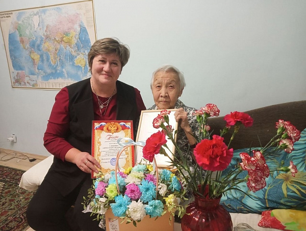 Дочь же стала для неё на склоне лет опорой и поддержкой, окружив её любовью и вниманием. И теперь счастливая мама зиму проводит в городе, а на лето, конечно же, выезжает в родной Усть-Алтан, где односельчане любят и уважают её. Почетную миссию поздравить в Иркутске Александру Федоровну с 90-летием со дня рождения выполнила Наталья Петрова, директор управления. социальной защиты и социального обслуживания населения по Осинскому району, вручив юбиляру Благодарственное письмо Мэра района Бориса Хошхоева и подарок, также поздравления от районного Совета ветеранов и Управления соцзащиты. Александра Фёдоровна очень признательна за поздравление со знаменательной датой, за то, что помнят и уважают её. От всей семьи передают землякам пожелания в Новом году доброго здоровья и благополучия во всём.