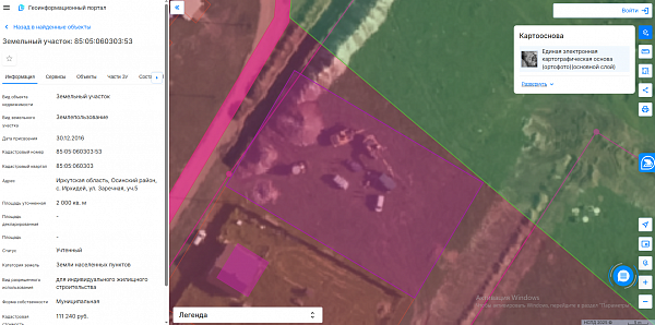 - Российская Федерация, Иркутская область, Осинский район, с. Ирхидей, ул. Заречная, уч.5, общей площадью 2000 кв. м., с кадастровым номером 85:05:060303:53.